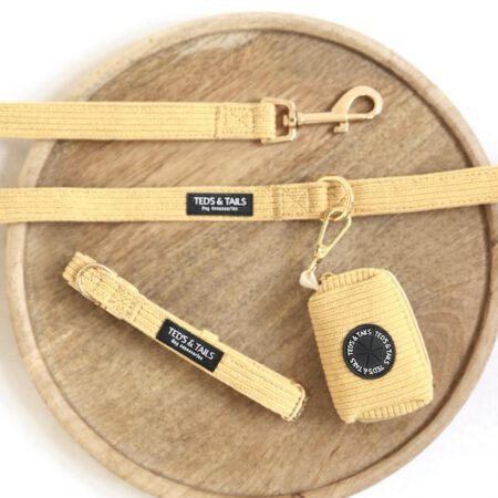 Du suchst ein Hundegeschirr, ein Halsband oder anderes Hundezubehör? Hier findest du alle Hundezubehöre aus der Honey Haze Kollektion: eine schöne Kollektion aus warmgelbem Cord mit goldenen Details und kunststoffgelben Schnallen. Wirf einen Blick auf die untenstehenden Produkte und stelle dein Hundezubehör-Set für deinen vierbeinigen Freund zusammen.